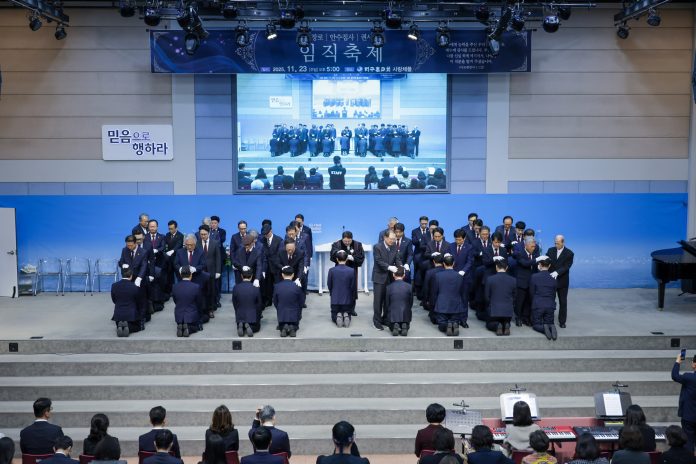 서서울노회 지구촌교회(김형석 목사)는 11월 23일(주일) 오후 5시 지구촌교회 사랑채플에서 장로, 집사, 권사 등 일꾼을 세우는 임직 축제를 거행했다.