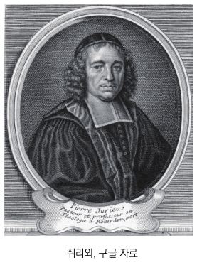 삐에르 쥐리외(Pier re Ju r ieu, 1637~1713)는 블루와(Blois) 교구 메르(Mer)의 위그노 목사 가정에서 태어났다. 그의 어머니는 파리 샤릉똥 교회의 초대 목사였던 삐에르 뒤물랑 (Pierre du Moulin, 1568~1658)의 딸이다. 쥐리외는 소뮈르(Saumur)와 스당(Sedan)에서 신학을 공부하여 박사학위를 받았다. 그는 네덜란드와 영국을 여행한 후에 고향으로 돌아와서 아버지의 목회를 이어받았다. 1674 년, 쥐리외는 학문성에 높은 평판을 받아 스당신학교에서 신학 과목과 히브 리어 과목 교수로 임명되었다. 이때 그는 『개혁파 신앙을 고수하는 신자들의 신앙 변호』(1675)와 『교회의 권세에 관한 논문』(1677)을 저술하였다. 그러나 1681년에 루이 14세가 스당 신학교를 폐교시키자, 쥐리외는 루앙(Rouen)으로 가서 잠시 목회를 하다가 박해를 피해 네덜란드 로테르담(Rotterdam)으로 피신했다. 그는 거기에서 왈롱파(네 덜란드에 거주하지만 프랑스어를 말하는 신교 신자들) 교회의 목사가 되어 종신토록 목회했고, 에꼴 일뤼스트르 (École Illustre)의 신학 교수로 활동했 다. 여기에서 그는 『칼빈주의와 교황주 의의 비교 역사』(1683)를 출판했다.